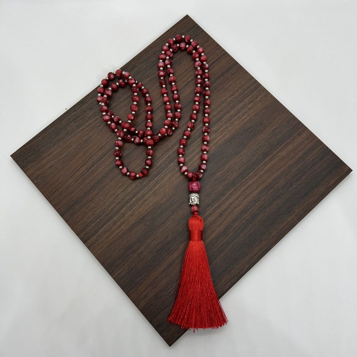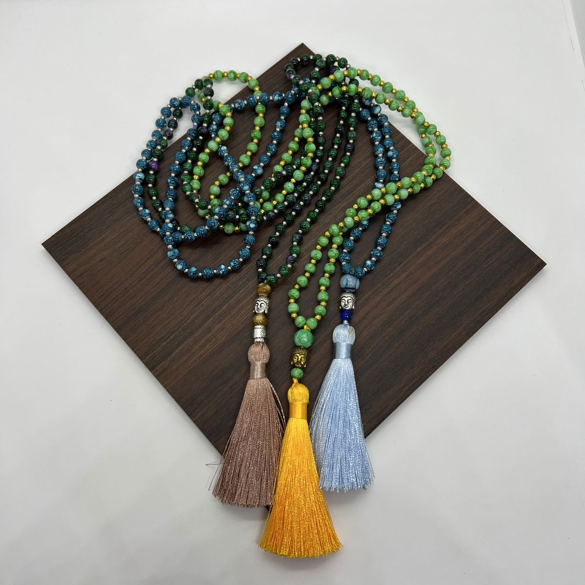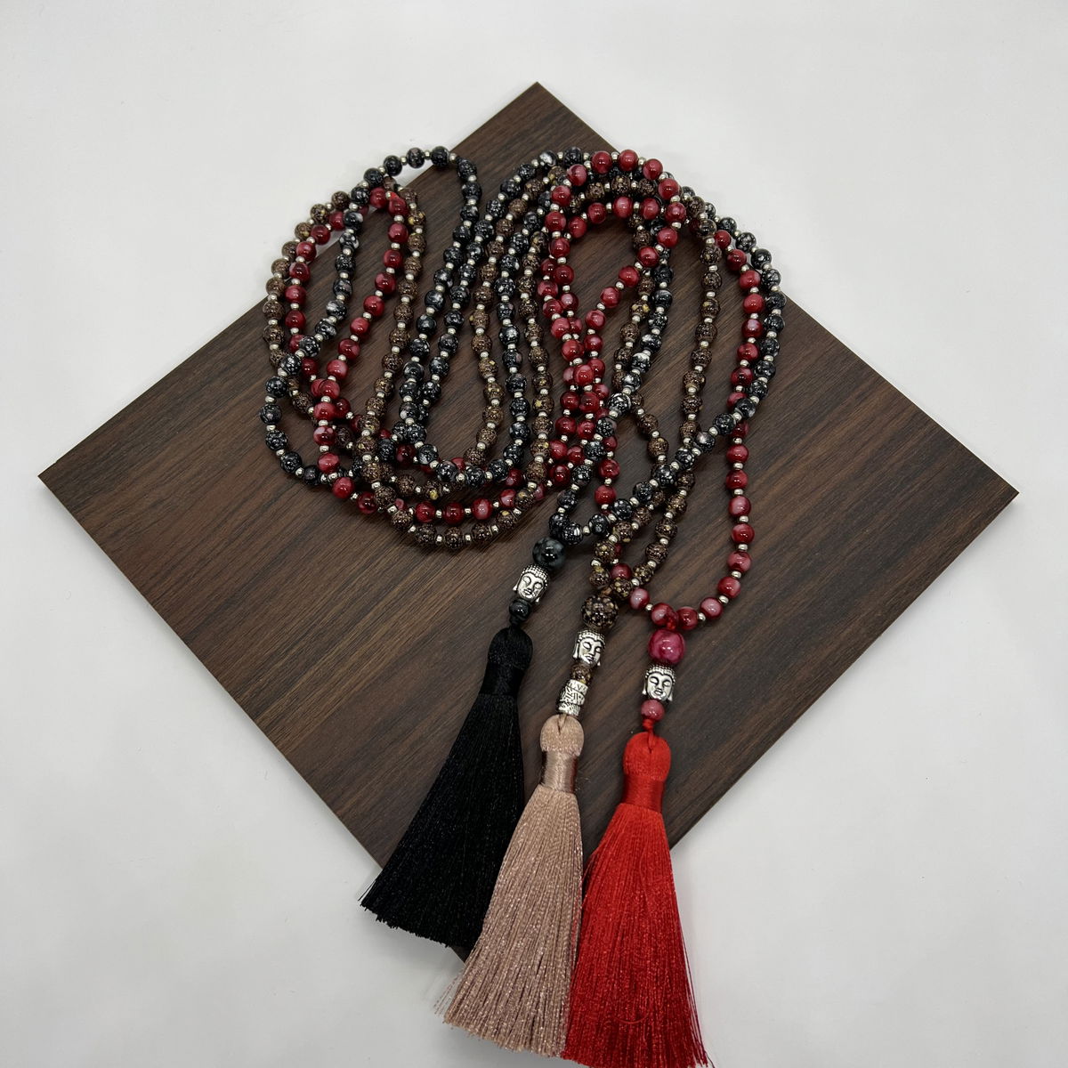 108 cuentas de vidrio con borla de seda y dije