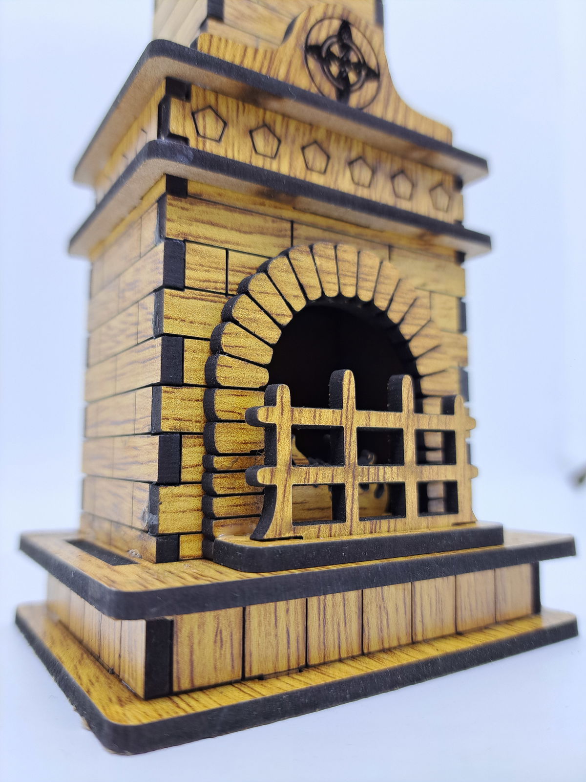 Fabricado en MDF con corte láser, este diseño imita una chimenea rústica que no solo decora, sino que también crea una atmósfera cálida y especial mientras perfuma el ambiente.